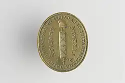Seal with the inscription "Administration de la Caisse de l'Extraordinaire" together with the symbol of revolutionary France (fasces with a Phrygian cap on top) and the abridged motto "Liberté - Égalité", held at the Musée Carnavalet[1]