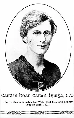 1. ^ a b "Remembering Caitlín Brugha, TD for Waterford, 1923–1927". Reflections on history, feminism, activism and politics. 4 December 2018.