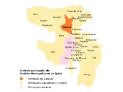 Calacalí is a rural parish of Quito Canton, Pichincha Province, Ecuador. It is northwest of Casitagua Volcano and southwest of Pululagua Volcano.