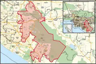 _(new_version).svg.png) Parts of Orange, Riverside and San Bernardino counties (Yorba Linda, Anaheim Hills, Orange, Chino Hills, Tustin, Mission Viejo, Aliso Viejo, Rancho Santa Margarita, Laguna Hills, Laguna Woods, Villa Park, Lake Forest, the unincorporated communities of North Tustin and Coto de Caza, and parts of Brea and Corona.)