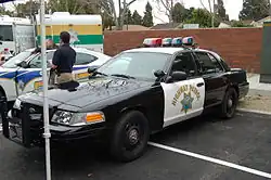 The California Highway Patrol (CHP) is the principal state police agency for the U.S. state of California. The CHP has primary jurisdiction, including patrol and investigations, over all California freeways and state property.[5] Additionally, the CHP is responsible for the enforcement of all laws regulating the operation of vehicles on highways, including all roadways, outside incorporated city limits. The CHP can exercise law enforcement powers anywhere within the state.[6]