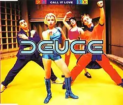 "Call It Love" is a song by British pop group Deuce, released in January 1995 by London Records as the debut single from the group's only album, On the Loose! (1995). The song is written by Ian Curnow, Phil Harding and Tom Watkins, and produced by Rob Kean. It was a sizeable hit in Europe, peaking at number eleven in the UK[4] and number fourteen in Ireland. Its accompanying music video featured a cameo by Tony Mortimer from East 17.