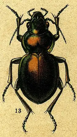 | Illustration of monographs Georgiy Jacobson "Beetles Russia and Western Europe. Calosoma elegans is number 13 | |