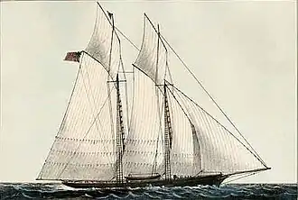 Ashbury was encouraged by Cambria's success in the Isle of Wight race, particularly because the champion American schooner Sappho had finished last.[2] In October 1868 Ashbury wrote to the New York Yacht Club offering to be the first challenger for the America's Cup.[3] He subsequently exchanged letters with Gordon Bennett, sportsman and owner of the New York Herald, challenging him to a trans-Atlantic race, prior to competing for the cup on behalf of the Royal Thames Yacht Club.