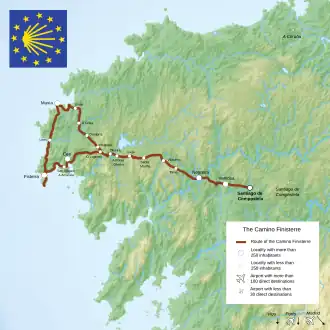The Camino Finisterre is a route of the Camino de Santiago. It runs from Santiago de Compostela to Fisterra and Muxía.[1]