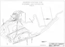 The site of Camp Growden is preserved as a free access[85] Colville National Forest site of interest along the Sherman Pass Scenic Byway[86] which was put in in the 1950's. Named the "Growden Heritage Site", the interpretive area is open from Memorial Day weekend through the end of October. The interpretive area has picnic tables, toilets, parking, plus day hiking.[87] A 0.2 mi (320 m) paved trail with interpretive signage documents the history of camp Growden, Growden Dam, and Lake Sherman.[85] Oversight of the heritage area falls under the control of Colville National Forests Three Rivers Ranger District. The district provide the regular site cleaning and maintenance. They also perform security patrols and do trail and road work as needed. The site no longer has camping areas as it did in the past, and the nearest national forest camp ground is east at the confluence of Canyon and Sherman Creeks.[3]