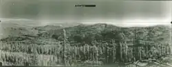 Construction of a fire line with associated Dollar Mountain Fire snag felling and deadwood slashing started January 1 and finished on March 5. The 255 acres (103 ha) parcel in the South Sherman Creek drainage was selected for having good soil to replant in. The parcel was planned to be burned in August and then stocked with 80,000 Ponderosa seedlings later.[12][76][77] During that time a contingent of 50 enrollees arrived to fill out the company numbers on February 8 after working a stint at Camp Naches in the Yakima area.[76]