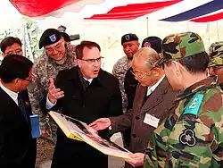 "YONGSAN GARRISON, Republic of Korea - Eighth U.S. Army announced plans to close Camps Eagle and Long in the Wonju area Oct. 5, continuing the base relocation of U.S. forces and the return of valuable real estate to the Republic of Korea as part of the Land Partnership Plan. U.S. Army Garrison Humphreys and Area III Commander Col. Joseph P. Moore briefed the workers of both camps on the impending closures Oct. 5. Moore said his intent is that no employee will lose his or her job as a result of the closure as long as they are willing to relocate to Humphreys or, in some cases, learn a new trade or skill. The two installations are currently home to 386 military and civilian personnel, including 176 Korean employees. Originally scheduled to close in 2008, the closure is expected to occur in 2010. The installations will eventually be returned to the ROK government. The timeline for closure and return is still being determined. Activities currently being conducted at the camps will be transferred to Camp Humphreys. U.S. Army plans call for the relocation of all forces to two hubs around Pyongtaek and Daegu by 2016. Benefits of this plan include a less intrusive presence in congested urban areas, increased safety for people in communities throughout the country and consolidated installations that will promote a higher quality of life than was possible on smaller, less modern bases."[10]