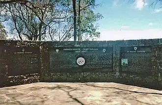 The base was chosen by Marine commanders because the colder climate was beneficial to Marines still suffering with malaria symptoms from the Guadalcanal Campaign, the nearby Parker Ranges were excellent training areas, the leadership knew that the Marines' next fight would be in mountainous terrain and the relative isolation of the camp gave the Marines time to adjust to the people of Hawaii after their brutal fight at Tarawa.[1] A small memorial can be viewed by the side of the Māmalahoa Highway.[2] It was located on the grounds of Parker Ranch, just outside the town of Waimea.