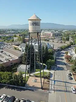 The Campbell Water Tower is a highly visible remnant of Campbell's "small town" past and located on the site of the original city water company and pumping plant near downtown.