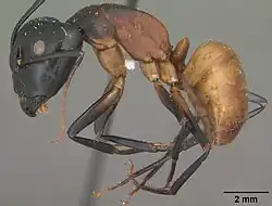 Camponotus ocreatus is a species of carpenter ant native to northern Mexico and the southwestern United States.[1][2][3][4][5][6]