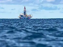The off-shore oil exploration in the Campos Basin began in 1968.[9] The first exploratory well was drilled in 1971. The first field to be discovered was Garoupa in 1974, at a shallow water depth of 120 metres (390 ft), followed by Namorado in 1975 in 166 metres (545 ft) of water.[2] The first oil production started in 1977 from Enchova Field, at a water depth of 124 metres (407 ft).[1] The largest fields, listed by their year of discovery year, include Linguado (1978), Carapeba (1982), Vermelho (1982), Marimba (1984),[10] Albacora (1984), Marlim (1985), Albacora-Leste (1986), Marlim Sul (1987), Marlim Leste (1987), Barracuda (1989), Caratinga (1989), Espadarte (1994), Roncador (1996), Jubarte (2002), Cachalote (2002), and Badejo (2008). The largest Marlim field is located in the northeast of the basin, 110 kilometres (68 mi) offshore in water depths ranging from 650 to 1,050 metres (2,130 to 3,440 ft).[9]