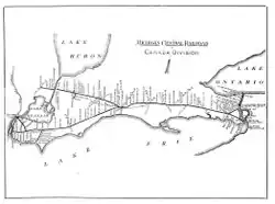 The company was originally authorized to construct a railway line between Fort Erie and Sandwich (Windsor), with a branch line to Amherstburg.[8] A second branch line was authorized in 1869 between St. Thomas and Sombra the following year.[9] Other significant subsequent legislation included: