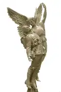 "Bronze Angel", by sculptor, Coeur Lion MacCarthy, war memorial depicts the angel of victory raising up a young soldier to heaven at the moment of his death, 1921 commemorates 1,115 Canadian Pacific Railway employees killed during the First World War erected at the Canadian Pacific Railway stations.[11] | |