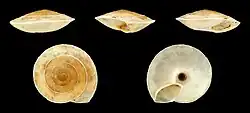| Five views of a shell of Canariella planaria | |