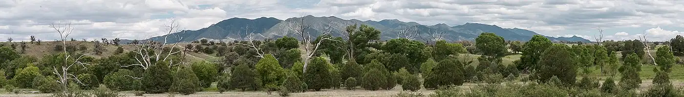 The Canelo Hills are a range of low mountains or hills in eastern Santa Cruz County, Arizona. The range consists of a series of northwest–southeast trending ridges extending from the Sonoita Creek valley southwest of Sonoita to the Parker Canyon Lake area in southwest Cochise County, Arizona. The Canelo Hills merge with the Huachuca Mountains to the southeast. The San Rafael Valley lies to the southwest of the range and the Patagonia Mountains lie to the west across the Harshaw Creek valley. The Canelo Hills Cienega Reserve and the ghost town of Canelo, Arizona, are located on the eastern side of the hills.