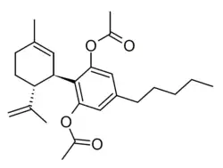 - ^ Holt AK, Poklis JL, Peace MR (October 2022). "∆8-THC, THC-O Acetates and CBD-di-O Acetate: Emerging Synthetic Cannabinoids Found in Commercially Sold Plant Material and Gummy Edibles". Journal of Analytical Toxicology. 46 (8): 940–948. doi:10.1093/jat/bkac036. PMC 9564187. PMID 35674405.