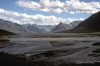 The Canning River flows through parts of the North Slope in the U.S. state of Alaska.[1] The river begins in the Franklin Mountains of the Brooks Range in the northeastern part of the state.[3] It flows generally north for 125 miles (201 km)[1] through the Arctic National Wildlife Refuge and enters Camden Bay west of Kaktovik on the Beaufort Sea.[3]
