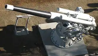- Schneider-Ansaldo Model 1914 - Single pedestal mount, right hand traverse & elevation and semi-automatic breech.[6]