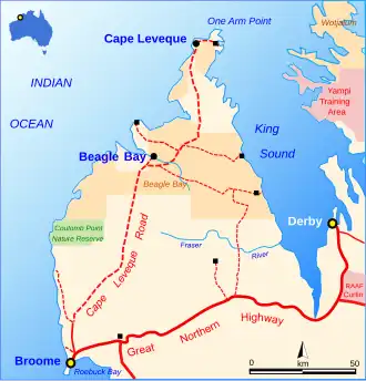 - ^ Laden, Carly (4 May 2018). "Cape Leveque road project begins". The West Australian. Perth, Western Australia. Retrieved 25 May 2019.