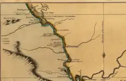 The term cape has a different tradition of usage in the American Midwest along the Mississippi River. The middle Mississippi River Valley once formed part of the French Colonies of Quebec and Louisiana, also referred to as Upper Louisiana (Haute-Louisiane) or the Illinois Country (Pays des Illinois).[1] The Illinois Country also included the left bank of the Mississippi River in present-day Missouri.[2][3]