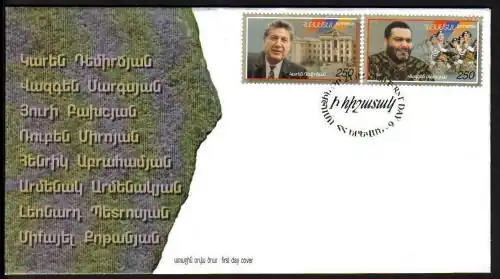 A postal card depicting Karen Demirchyan and Vazgen Sargsyan, the defence minister and a politician of Armenia at the time. Both were victims in the Armenia Parliament Shooting.