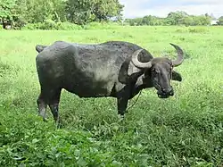 Carabaos (Filipino: kalabáw) are a genetically distinct population of swamp-type water buffaloes (Bubalus bubalis kerabau) from the Philippines.[1] They were also further introduced to Sulawesi and Borneo of eastern Indonesia and Malaysia.[2][3][4]