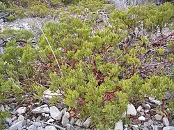 Within the Carbonera Creek watershed is one of the three known Maritime Coast Range Ponderosa Pine forests, a rare assemblage of vegetation narrowly restricted to sandy, infertile Zayante soils formed over Santa Margarita Sandstone. This habitat is only found in coastal Santa Cruz County and is found in a part of the Carbonera Creek catchment in the southwestern part of the City of Scotts Valley on the slopes of Mount Hermon, extending to the south. The surface soil and subsoil drain very rapidly and do not retain enough water to support local climax species such as Coast redwood or Douglas fir. The Ponderosa Pine (Pinus ponderosa) withstands the stresses of this xeric habitat and typifies the open plant community, which also supports rare species of flora such as the Bonny Doon manzanita (also called the silver-leaved manzanita) (Arctostaphylos silvicola) and the endangered Ben Lomond wallflower (Erysimum teretifolium). There are two Federally listed endangered species of insects within this sparse forest.