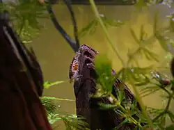 Larvae are born not more than 3 mm (0.12 in) in length, and grow to full size through molting.[4] The gestation period is about 30 days. Caution must be taken with filtration when the young when they are in an aquarium, as they can be pulled into the intake.