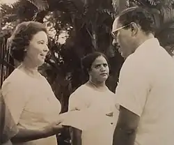 A graduate of St. John's College, Belize, Sister Caritas entered the Mercies and had further studies in the United States. She then taught sociology and philosophy of education at University of Belize from 1968 to 1973, residing in St. Ignatius parish from 1970 to 1973 and directing the choir there. A promoter of women’s issues, she actively supported Sr. Consuelo Torres’ decision to allow girls to remain at St. Catherine Academy after having a child. The photo shows her (center) and Sr. Yvonne Hunter receiving a petition from Charles M. Woods Sr. after a peaceful protest parade in Belize town over this issue.[1]: 170