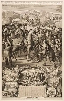 The victory at Fraustadt had a crippling effect in Denmark, Russia and Saxony, and caused shock waves around Europe. In France, the victory was celebrated, and Prussian policy immediately became friendlier to the Swedes.[65] In June the same year, Rehnskiöld was made Count (in 1719, the count's branch of the Rehnskiöld family was introduced at the House of Nobility under number 48).[22] With the main Saxon army defeated, the Swedish Army had the opportunity to move into Saxony and force Augustus II out of the war. In August, Charles XII reunited with Rehnskiöld's army. The joint army moved through Imperial Silesia, and by September, the Swedes had successfully occupied Saxony without resistance. The Treaty of Altranstädt (1706) was concluded between Sweden and Saxony on 14 September. Under Swedish terms, Augustus II was forced to break all ties with his allies, renounce his claims to the Polish crown, and accept Stanisław Leszczyński as the new King.[66][67]