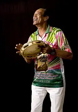 Carlos de Oliveira, better known as Carlinhos Pandeiro de Ouro,[1] is a Brazilian percussionist best known for playing the pandeiro, a tunable tambourine, played with a different technique than in North American music,[2] and is one of the instrument's major proponents.