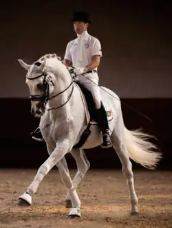Carlos Pinto riding Soberano III in Saumur
