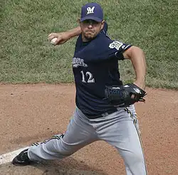 Carlos Manuel Villanueva Paulino (born November 28, 1983) is a Dominican former professional baseball pitcher. He played in Major League Baseball (MLB) for the Milwaukee Brewers, Toronto Blue Jays, Chicago Cubs, St. Louis Cardinals, and San Diego Padres. He also played in the KBO League for the Hanwha Eagles.