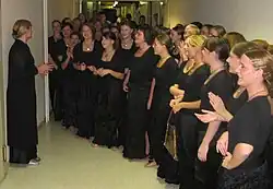 Carmina Slovenica is a Slovenian female vocal theatre ensemble, choir and production house, based in Maribor. It consists of three main ensembles, the Vocal Theatre Carmina Slovenica, the Carmina Slovenica Concert Choir, and the Ensemble ¡Kebataola!.[1] Its concert and music theatre productions have toured internationally. The artistic director of Carmina Slovenica is conductor and director-author Karmina Šilec.[1]