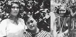 While the Japanese controlled these islands they used these people as laborers for mining and handling phosphate ore. One of the mines was in Angaur under the Palau group.[18] In the economic system under Japan in Saipan Chamorros fared better than Carolinians.[30] Carolinians were not treated as well as the Chamorros who worked with them. The Japanese and other colonial powers during this time (WWI-WWII) would not allow Carolinians to do canoe navigation over large distances.[31] During this time a term was used to refer to the Micronesian people under Japanese control which was 'Tomin.' Tomin meant inhabitants of the land. The Carolinian and Chamorro people viewed this as a put down since Japanese used it as part of the discrimination. The Japanese government or South Seas Government viewed them as uncivilized and primitive.[30] The people were kept under strict surveillance.[32] They were enslaved in 1944.[31] During this time a few in this indigenous community served as scouts for the U.S. military. They served in the U.S. Marines.