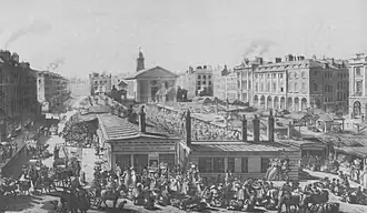 Two of the shacks in the Great Piazza facing the Little Piazza (or hummums) were being used as a coffee house when Carpenter gained control of the market and he took these over, renamed them "Carpenter's Coffee House", and installed his parents as managers. Carpenter was uninterested in serving coffee to his customers, and the quality of the coffee was poor, William Hickey describing it in 1766 as "a spartan mixture difficult to ascertain the ingredients but which was served as coffee".[1]