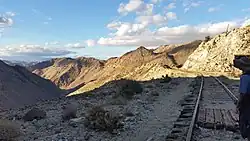 Carrizo Gorge is a gorge in the Jacumba Mountains in San Diego County, California. Its mouth is at an elevation of 1,411 feet (430 m), where it widens out to become Carrizo Canyon, 1 mi (1.6 km) northeast of Palm Grove. Its head is located in the Jacumba Mountains, 1.5 mi (2.4 km) north of Round Mountain, at an elevation of 2,600 ft (790 m) at 32°39′38″N 116°11′28″W / 32.66056°N 116.19111°W / 32.66056; -116.19111.[1]