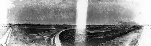 A view of Carroll Park being subdivided by John Carroll. The subdivision was incorporated into Long Beach. This photograph shows rural roads running past fields and trees in a flat landscape. Circa 1898