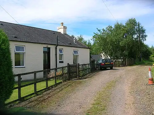 This intermediate station on the double track Glasgow - Kilmarnock - Gretna ('Nith Valley') main line of the former Glasgow and South-Western Rly was opened as Carron Bridge Station on 28 October 1850. It was renamed Carronbridge Station on 1 January 1871,[1] and closed to regular passenger traffic on 7 December 1953. The line remains in regular use by passenger and freight traffic. The station building has been converted into a private dwelling.