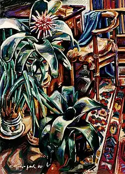 Together with his change in style he switches to pastel, and adds portraits, nudes, and elaborate compositions to his repertoire This leads to oversized pastel paintings, some comprising five elements and up to four metres wide, hanging in public places.