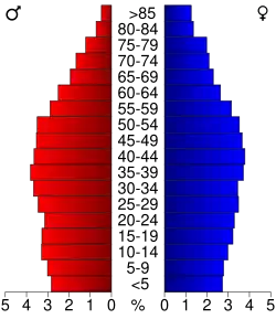 As of the census[23] of 2000, there were 56,742 people, 23,486 households, and 16,346 families residing in the county.[24] The population density was 166 people per square mile (64 people/km2). There were 25,920 housing units at an average density of 76 units per square mile (29/km2). The racial makeup of the county was 97.49% White, 1.00% Black or African American, 0.20% Native American, 0.26% Asian, 0.01% Pacific Islander, 0.27% from other races, and 0.78% from two or more races. 0.89% of the population were Hispanic or Latino of any race.