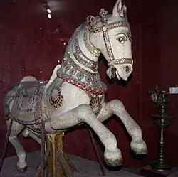 • Horse, wood, Tanjore, South India, 19th Century Ayyappan, Budha, Revanta, Chandra (chariot of 10 white horses), Indra (chariot pulled by a horse named Uchchaihshravas - pictured), Surya (chariot pulled by seven horses or a seven-headed horse), Kubera, Kalki.