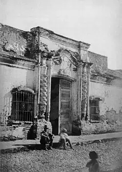 With the Congress gone, the house was still rented by the state, for a printing house. The family returned to it shortly afterwards, and reduced the renting to only the two front rooms. Carmen de Zabalía, granddaughter of Francisca Bazán and Nicolás Laguna, inherited the house in 1839 and began works to restore it. The humid climate of Tucumán and the materials used to build it caused a fast deterioration, and the family did not have the money to properly maintain it. The house was very deteriorated in 1869 when Ángel Paganelli took the first known photo of it.[4] He took a photo of the front door, and another of the internal patio with the "blind Zabalía", the blind daughters of Carmen.[5]