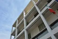The Casa del Fascio of Como (Italian pronunciation: [ˈkaːza del ˈfaʃʃo, ˈkaːsa -]), also called Palazzo Terragni, is a building located in Como, Italy, in the Piazza del Popolo (former Piazza Impero), considered one of the masterpieces of Italian Modern Architecture.[1] It was designed by Italian architect Giuseppe Terragni (1904–1943)[1] and it was inaugurated in 1936 as the local casa del fascio, i.e. office of the National Fascist Party.[2] After the fall of Fascism in 1945, it was used by the National Liberation Committee Parties and in 1957, it became the headquarters of the local Finance Police, who still occupy it.[2] The building has a square plan and four stories.