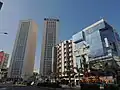 The Casablanca Twin Center (Arabic: برجا الدار البيضاء) is a complex of two skyscrapers located at Casablanca, Morocco. The two structures, the West Tower and the East Tower, have 28 floors each.[2] The center houses a complex of shops, offices, and a five-star hotel, and lies at the heart of Casablanca in the Maarif district, at the crossroads between Zerktouni Boulevard and the Boulevard Al Massira Al Khadra. The main architect was Ricardo Bofill and the associate architect was the Moroccan Elie Mouyal.