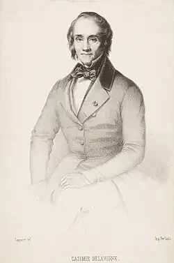 1. ^ a b c d e f One or more of the preceding sentences incorporates text from a publication now in the public domainChisholm, Hugh, ed. (1911). "Delavigne, Jean François Casimir". Encyclopædia Britannica. Vol. 7 (11th ed.). Cambridge University Press. pp. 946–947. Citations:
