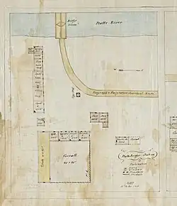 General layout of Platte Bridge Station drawn by Caspar Collins.