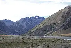 The Cass River is an alpine river in the Canterbury region of the South Island of New Zealand. It rises in the Hall Range immediately below Rankin Pass, and also receives water from the nearby Huxley Glacier on Mount Hutton.[1] After dropping 600 metres (2,000 ft) very rapidly the river flows south with braided channels along a flat-bottomed valley for 25 kilometres (16 mi). The Leibig Range and Gamack Range are to the west, and the Haszard Range to the east.[2] The river flows into the west side of Lake Tekapo where it has built up a gravel delta.[3]