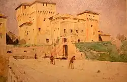 The Castello di San Giorgio is part of the Ducal palace of Mantua. It is a moated rectangular castle, each of which's four corners has a large tower and the moat is crossed by three drawbridges.